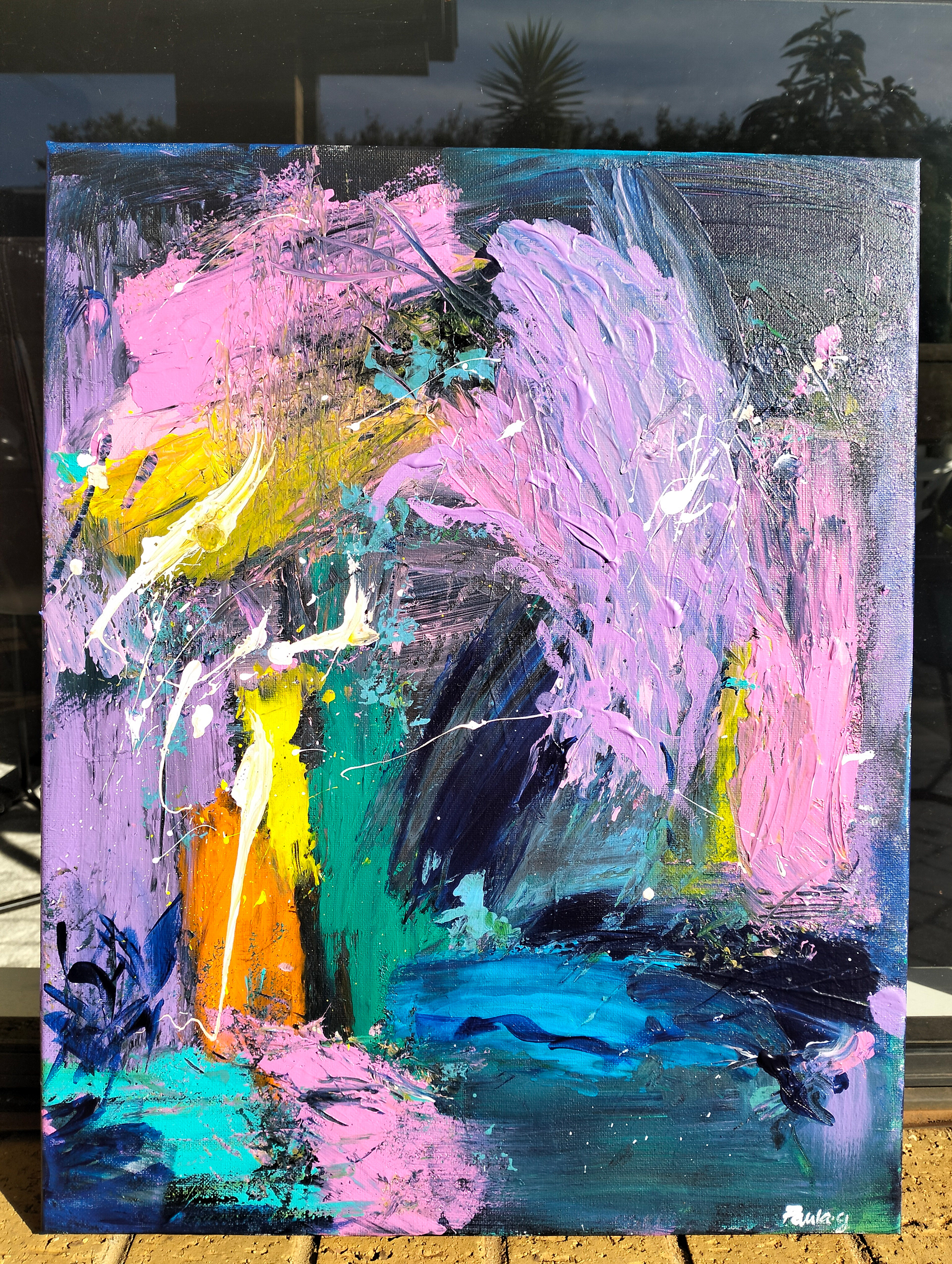 The Lady Artist Acrylic Abstract Painting on Ready to hang stretched canvas. Lady Artist is a vibrant and beautiful abstract painting that was created by painting even with my hands. It is not your usual just brush stroke painting and it is certainly something to look at! I wish I could keep it myself. But I'm here to sell my paintings so I won't keep them and it could be yours. They say great things come in small packages. This painting is not very big but it is an amazing painting maybe for a studio, office or small lounge room or for hanging with other similar artwork. Comes ready to hang. Needs a frame but the edges are painted. Or organise a frame on checkout. Acrylic on stretched canvas, ready to hang. Signed on the front and back. Artwork Details Medium Acrylic, Canvas, Ready to hang Dimensions 40cm (W) x 50cm (H) x 2cm (D